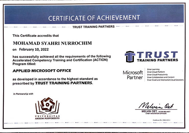Bachelor of computer in informatics study program at Amikom Purwokerto University. Active in organizational activities during lectures and holding the role of coordinator and other roles in the organization. Experienced as a practicum assistant for 2.5 years and has internship experience in technology companies. Has good analytical skills, is accustomed to troubleshooting computer hardware and software, and does not rule out the possibility of working in other fields