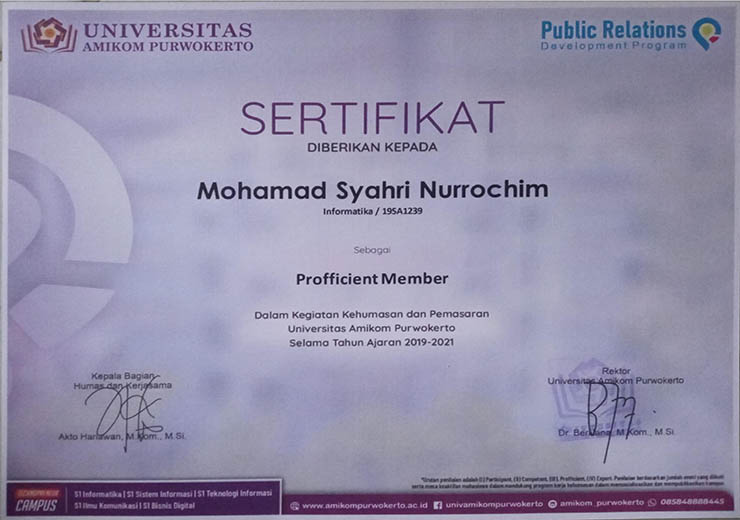 : Predicate of proficient member of the Public Relations Development Program (PRDP) Amikom Purwokerto University
